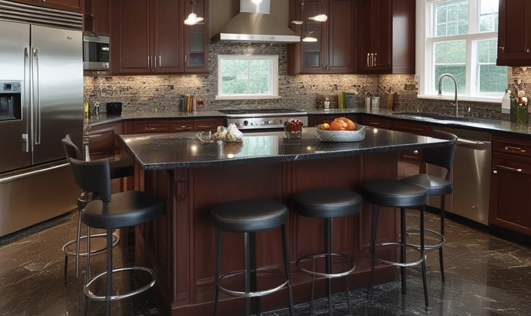 Our custom-cut black granite pieces are meticulously crafted for luxury interiors, ensuring a flawless finish and enduring quality that enhances any space.